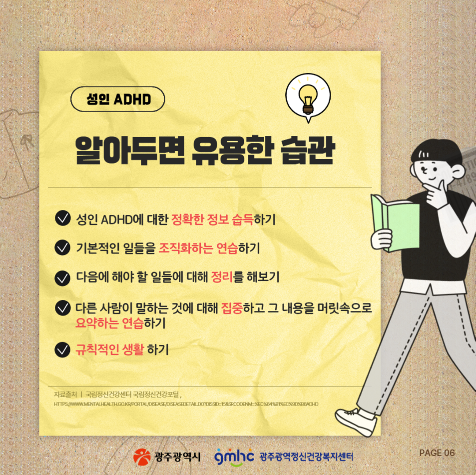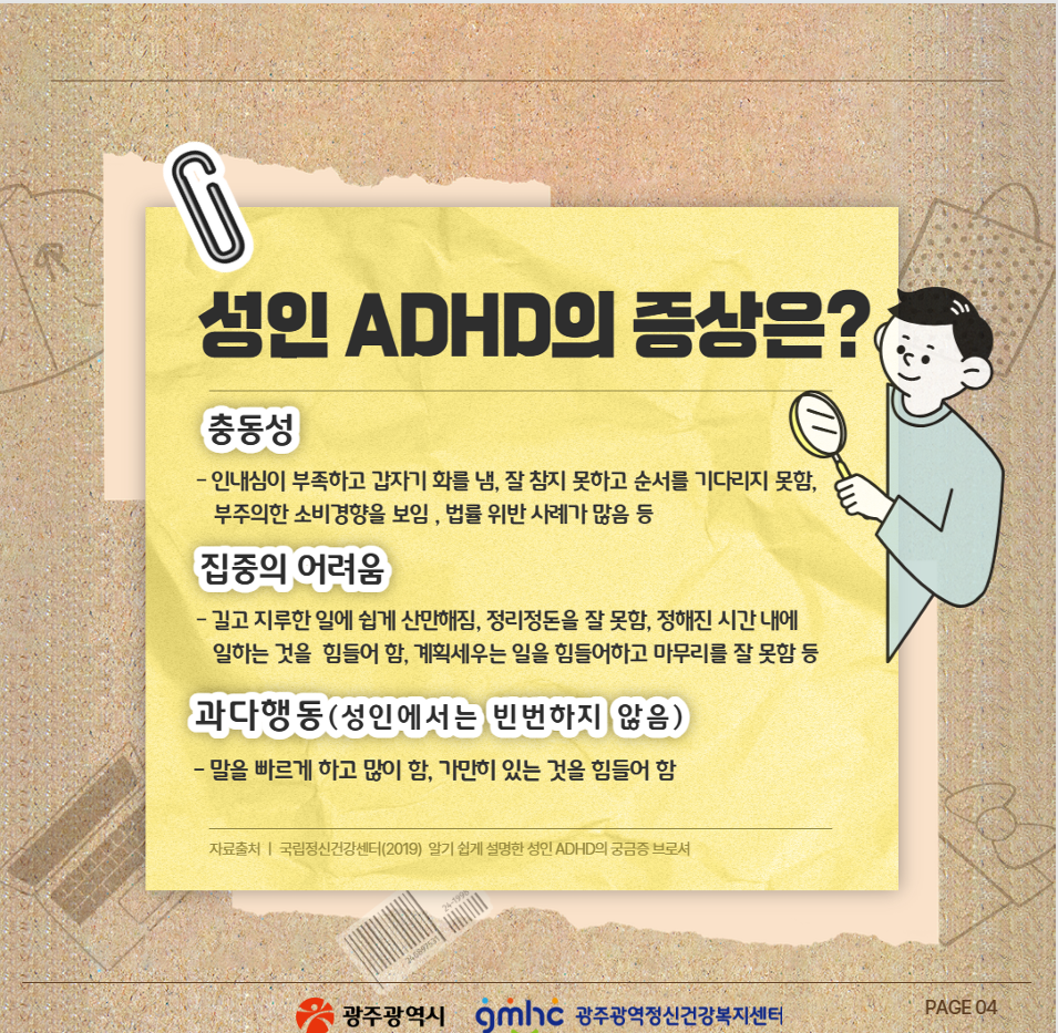 [광주광역시정신건강복지센터]충동성, 집중의 어려움, 과다행동 - 성인ADHD편
